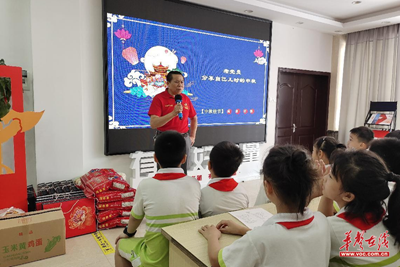 活动中,青少年们学习中秋传统文化,从中秋节的历史、神话故事以及中秋节的诗词来了解中秋节,传承传统节日。坡子街社区老党员刘孝元爷爷分享自己儿时的中秋。他说:“小时候条件比较艰苦,家里有很多兄弟姐妹,能吃到一个月饼都是一件幸福的事情,哪有现在过节这么丰盛的物资、热闹的气氛,所以同学们要好好读书,珍惜现在的幸福生活,将来成为国家栋梁,为国做贡献。”