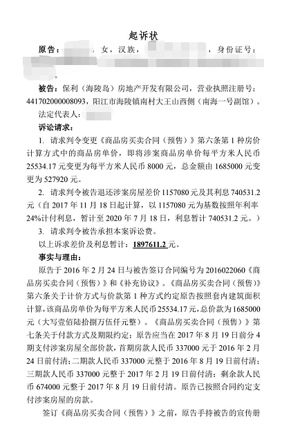 经过调查证实,该公司开发建设的“海陵岛保利•银滩H区(玉露天街)”项目涉及的全国各地购房者数量多,影响面范围广,受害者业主已提交相关材料至广东省阳江市人民法院。