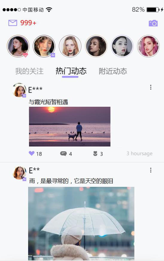 这里也可晒出你到过的风景,听过的故事,分享你的生活,天南地北,花开花落,看热门动态的丰富多彩,见各式各样的生活状态,动态里有你的身影,悦耳的声音,留下你的足迹,遇上爱你的小狗,来场甜蜜的相遇。